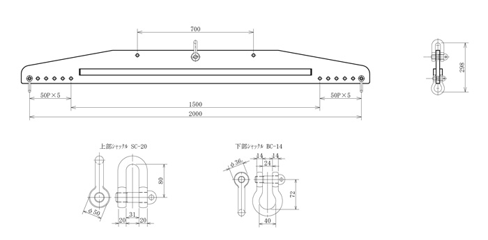 - (吊り巾) 1000~1500mm(100mmピッチ)